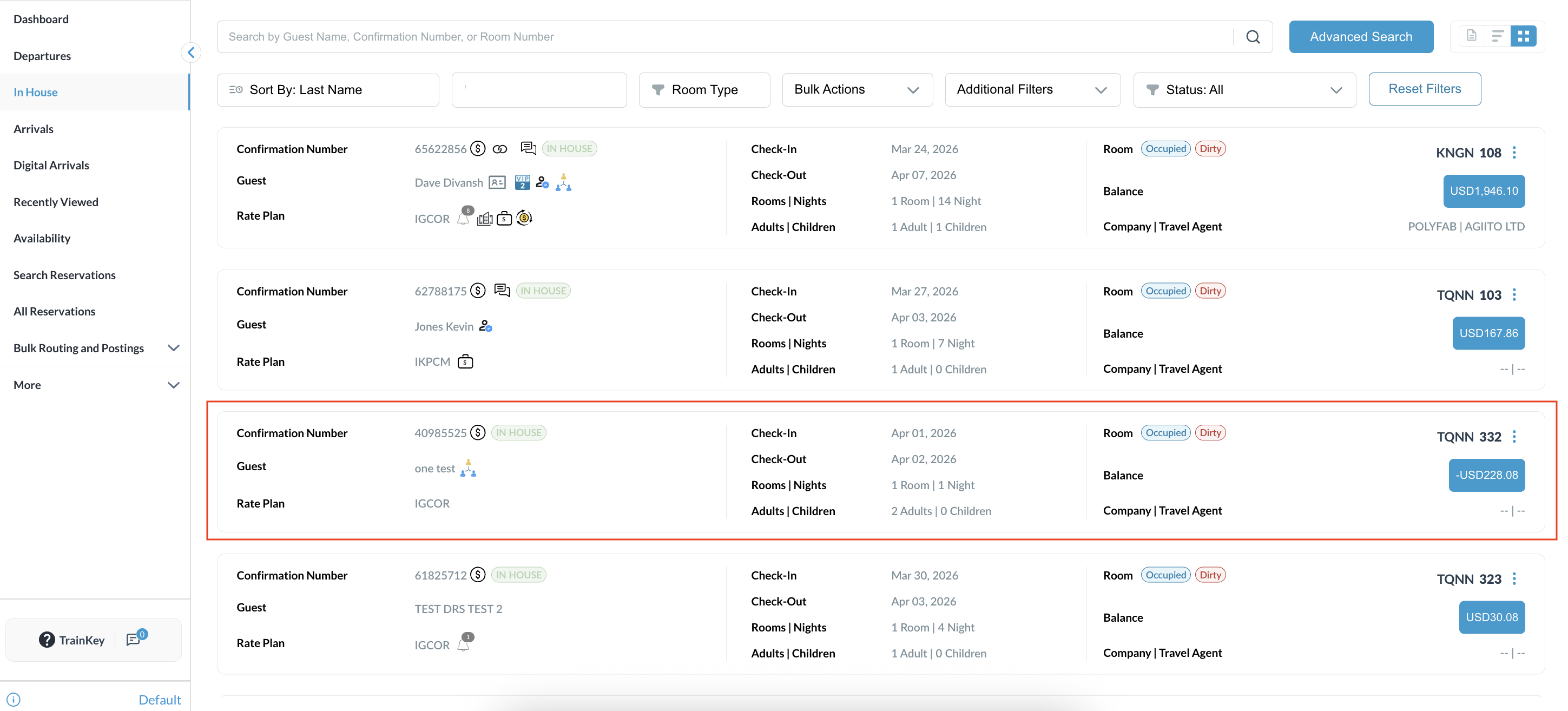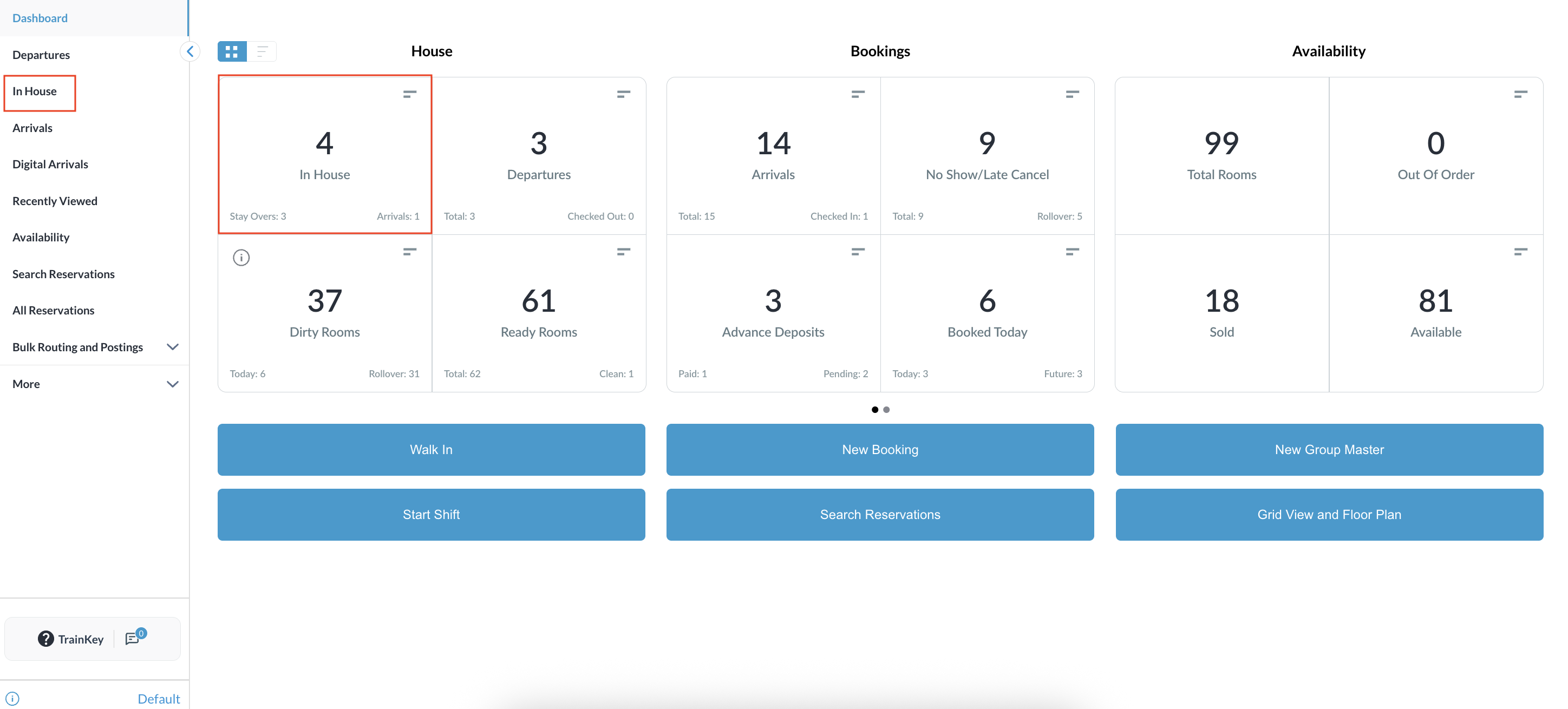 Navigate to Frontdesk Dashboard and click on In House Reservations | ![]() |