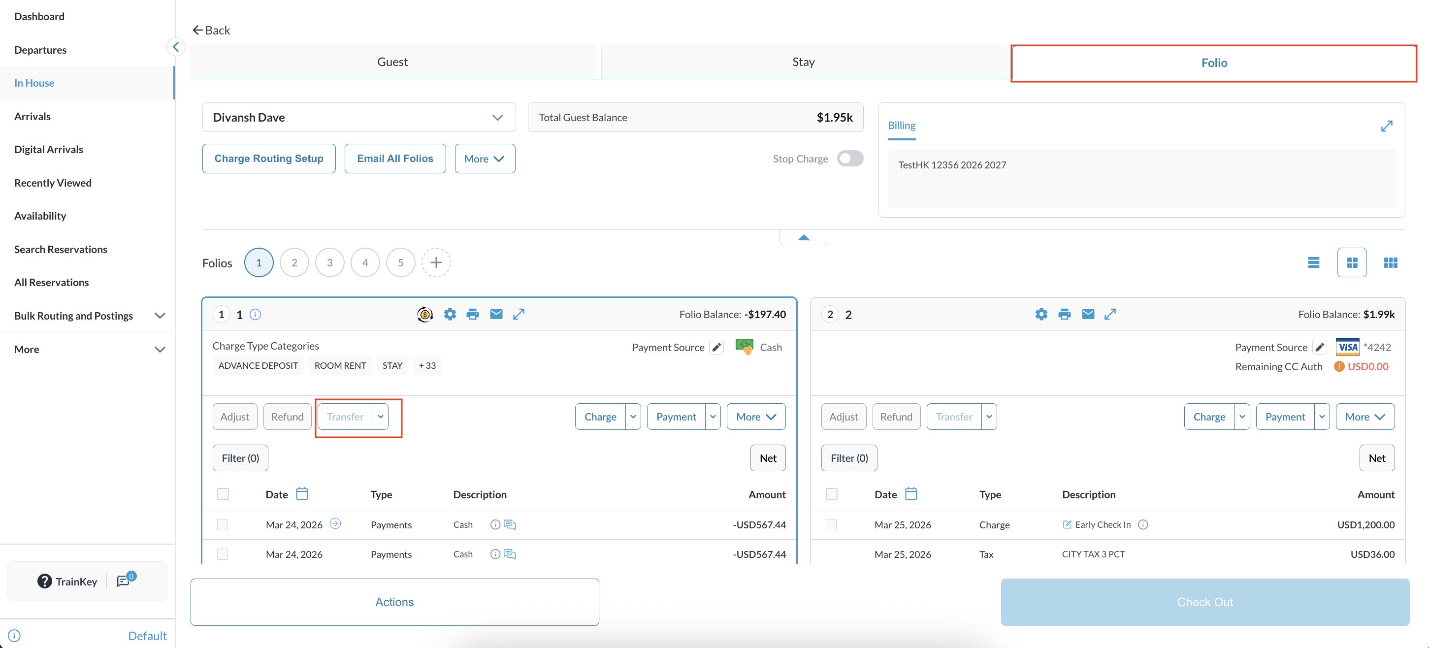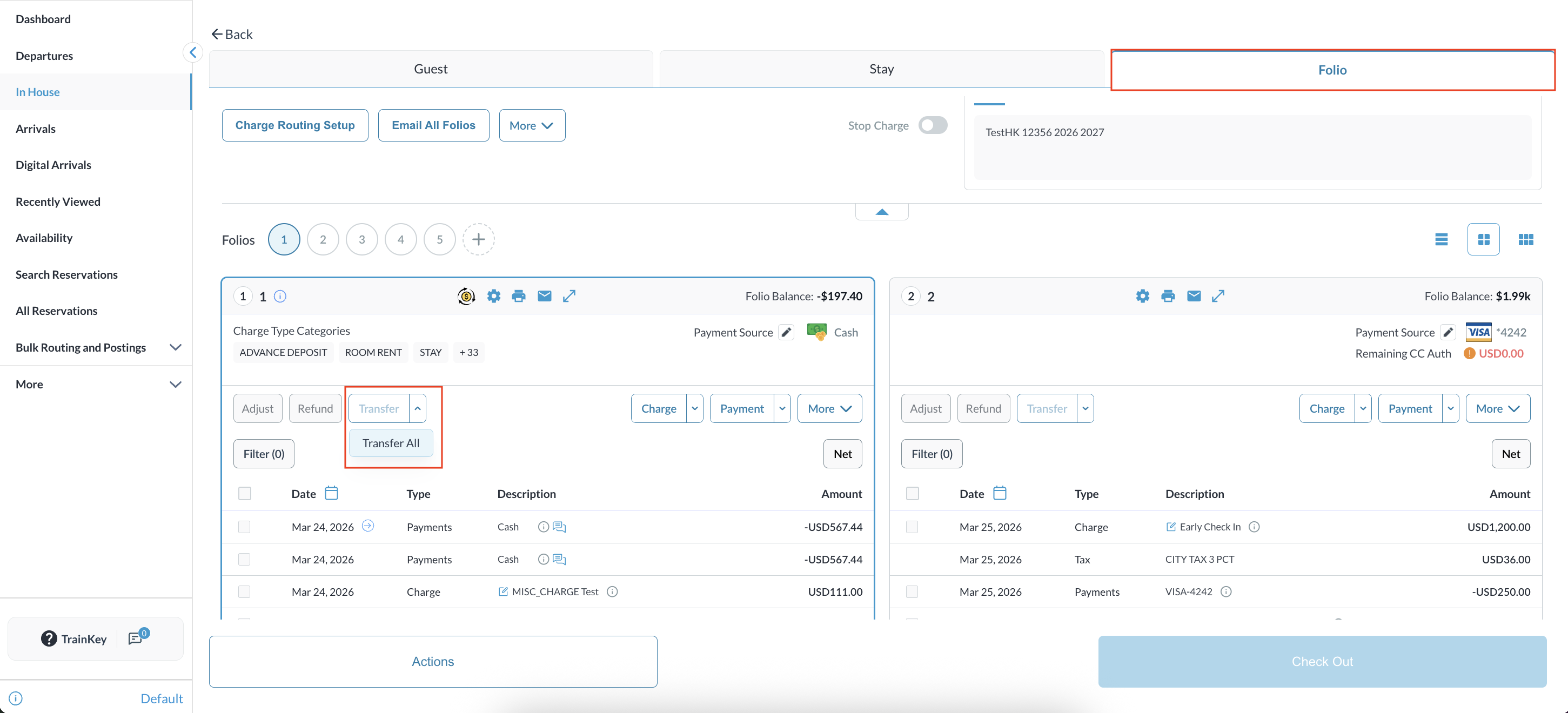 Managing complex billing just got easier. The Transfer All functionality is a powerful enhancement to the Advanced Folio view, designed to streamline the reconciliation and billing process. Instead of manually selecting individual transactions, users can now move all charges and payments from one folio to another in a single, efficient action.