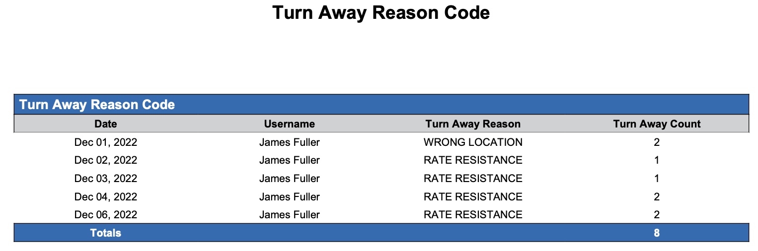Turn Away Reason Report