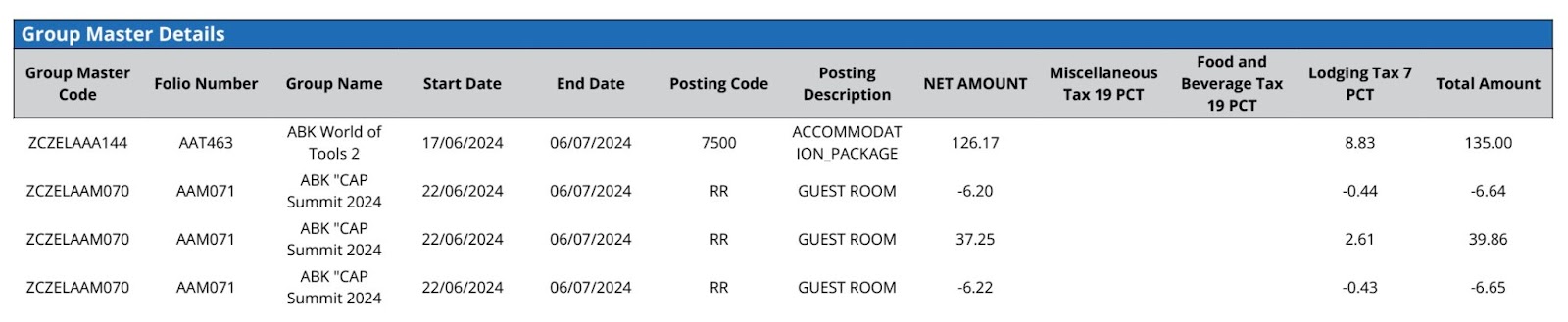 Group Master Code | Unique identifier for the group master associated with the transaction | Not Applicable | Not Applicable |