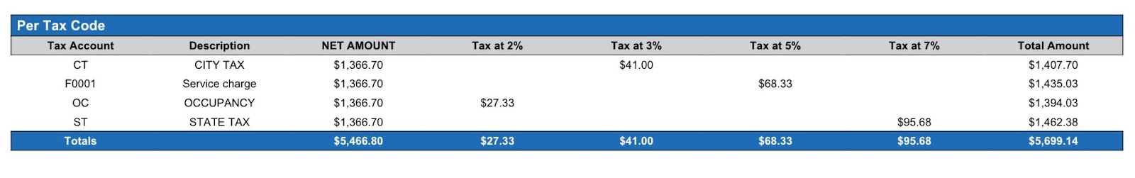 Tax 1 | Tax associated with the transaction Note: there will be a column for each tax type configured for the property | YES | Not Applicable |