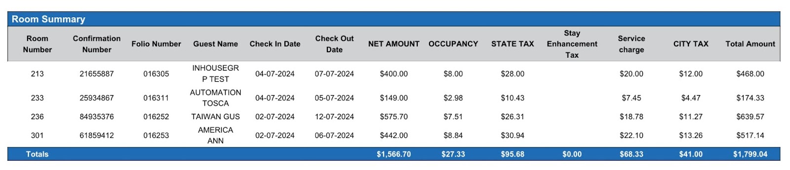 Room Number | Room number associated with the transaction | Not Applicable | Not Applicable |